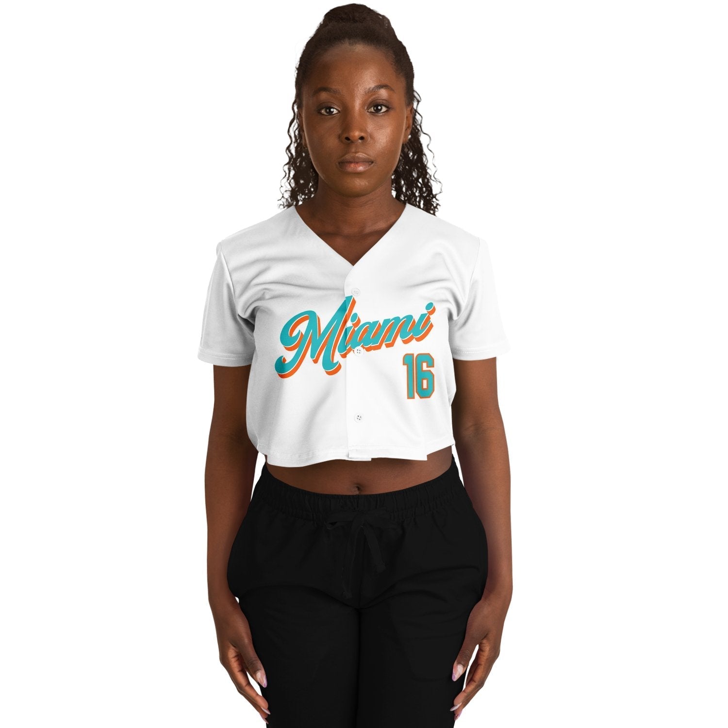 Introducing the 305 Home Crop Top, inspired by the vibrant spirit of Miami. Named after the city’s iconic area code, this crop top features a crisp white base, accentuated by striking aqua and orange accents. With "Miami" boldly emblazoned across the front and the driver's last name and number at the back, this crop top captures the essence of Miami's dynamic energy.