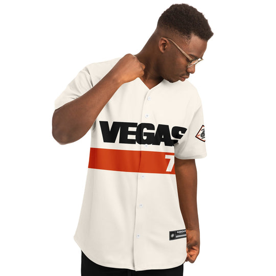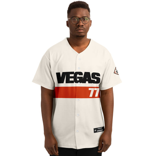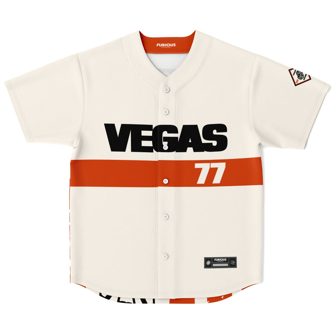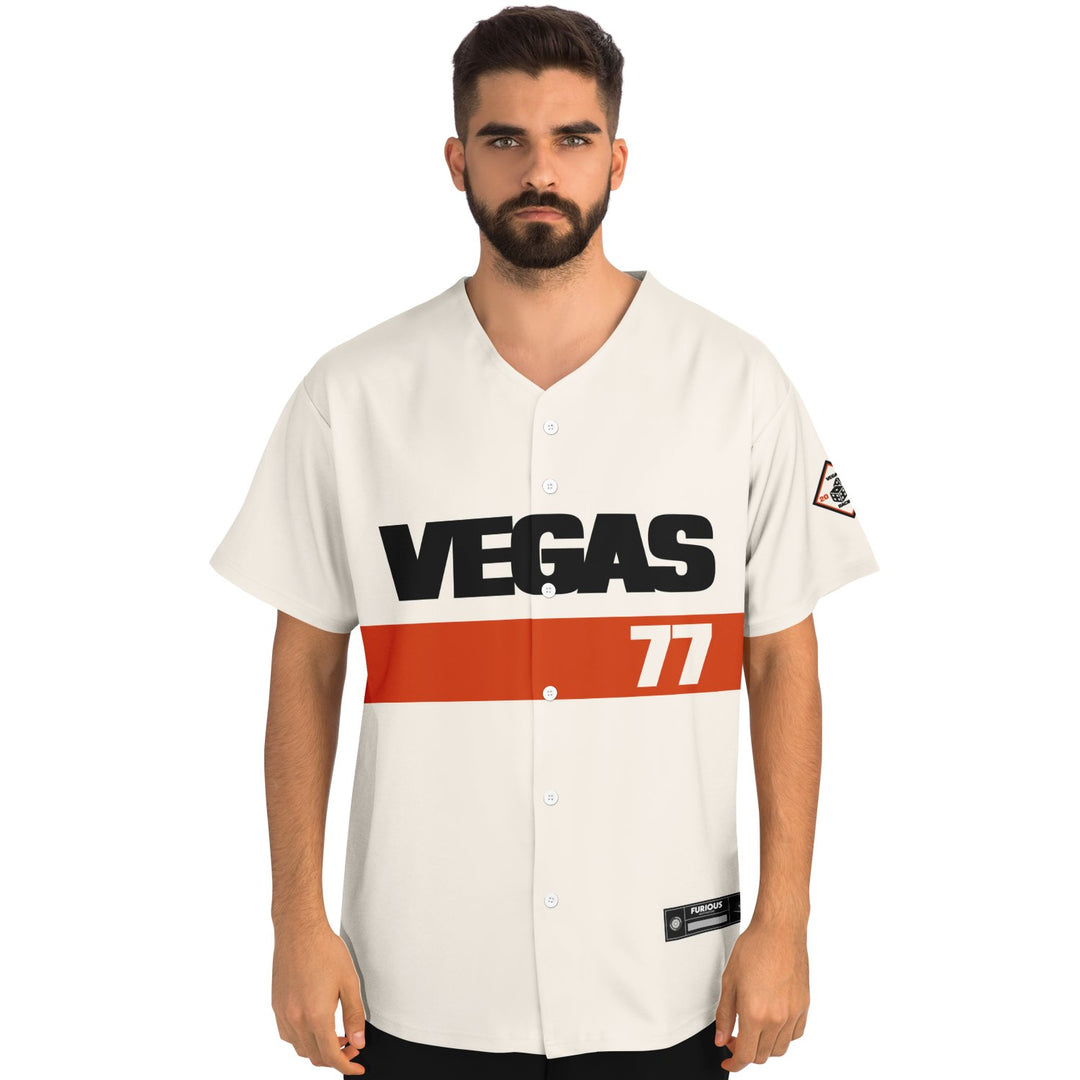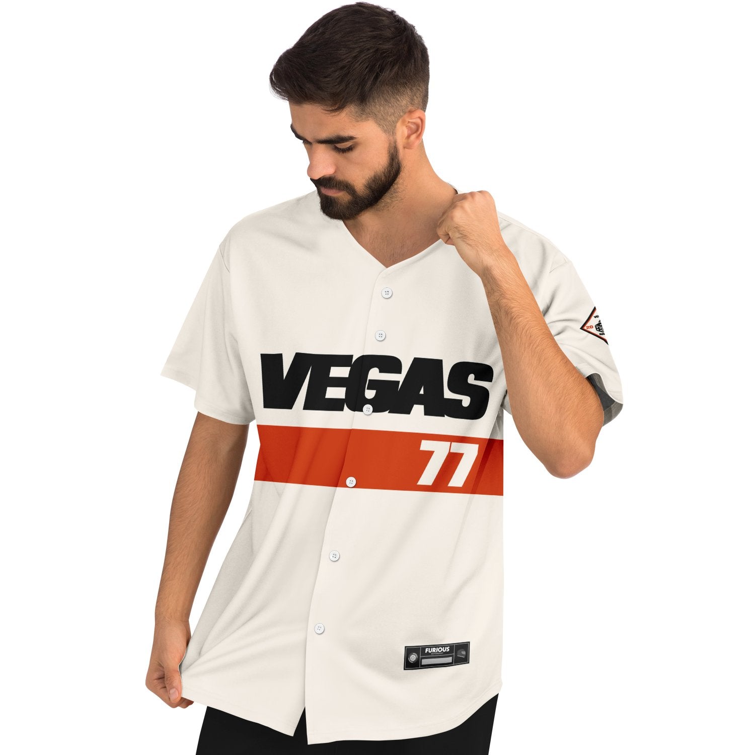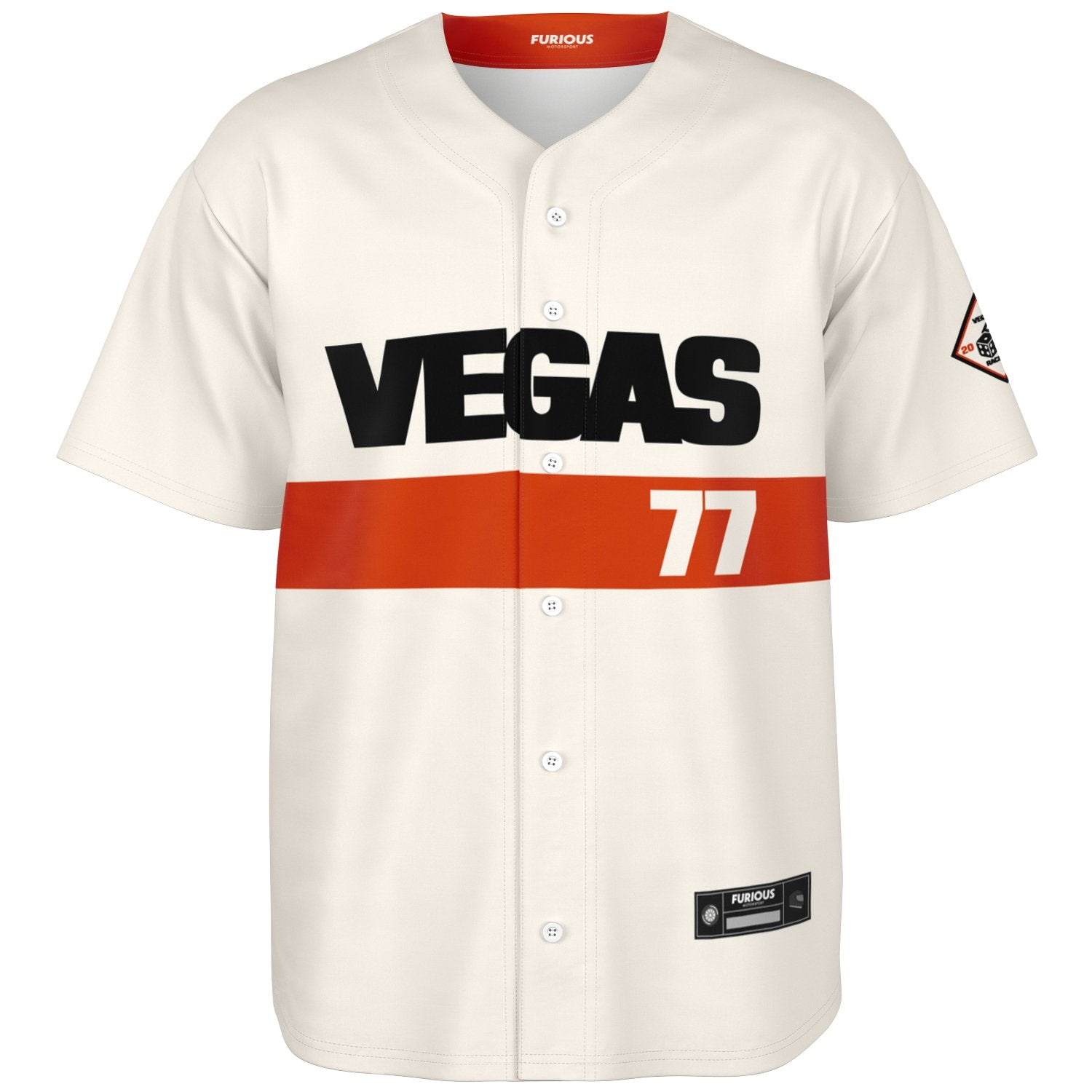 Introducing our "Vegas Street Circuit Jersey" – a modern departure from tradition. Crafted in off-white, it showcases a bold "Vegas" center text and a striking orange stripe housing the driver's number on the front. On the back, the driver's name and oversized numbers make a statement. Are you ready for the Las Vegas?