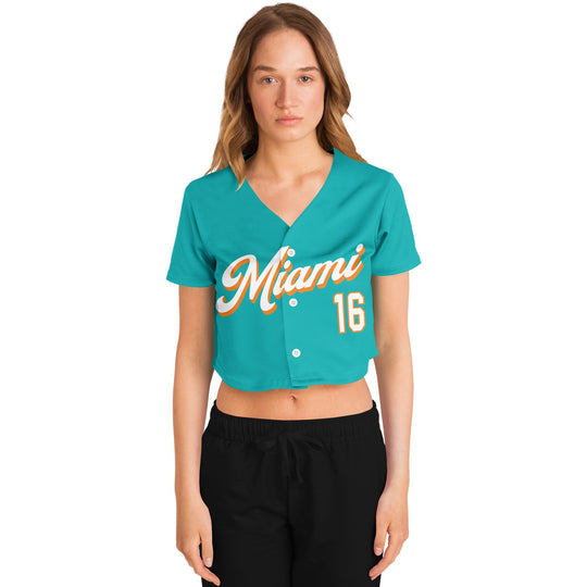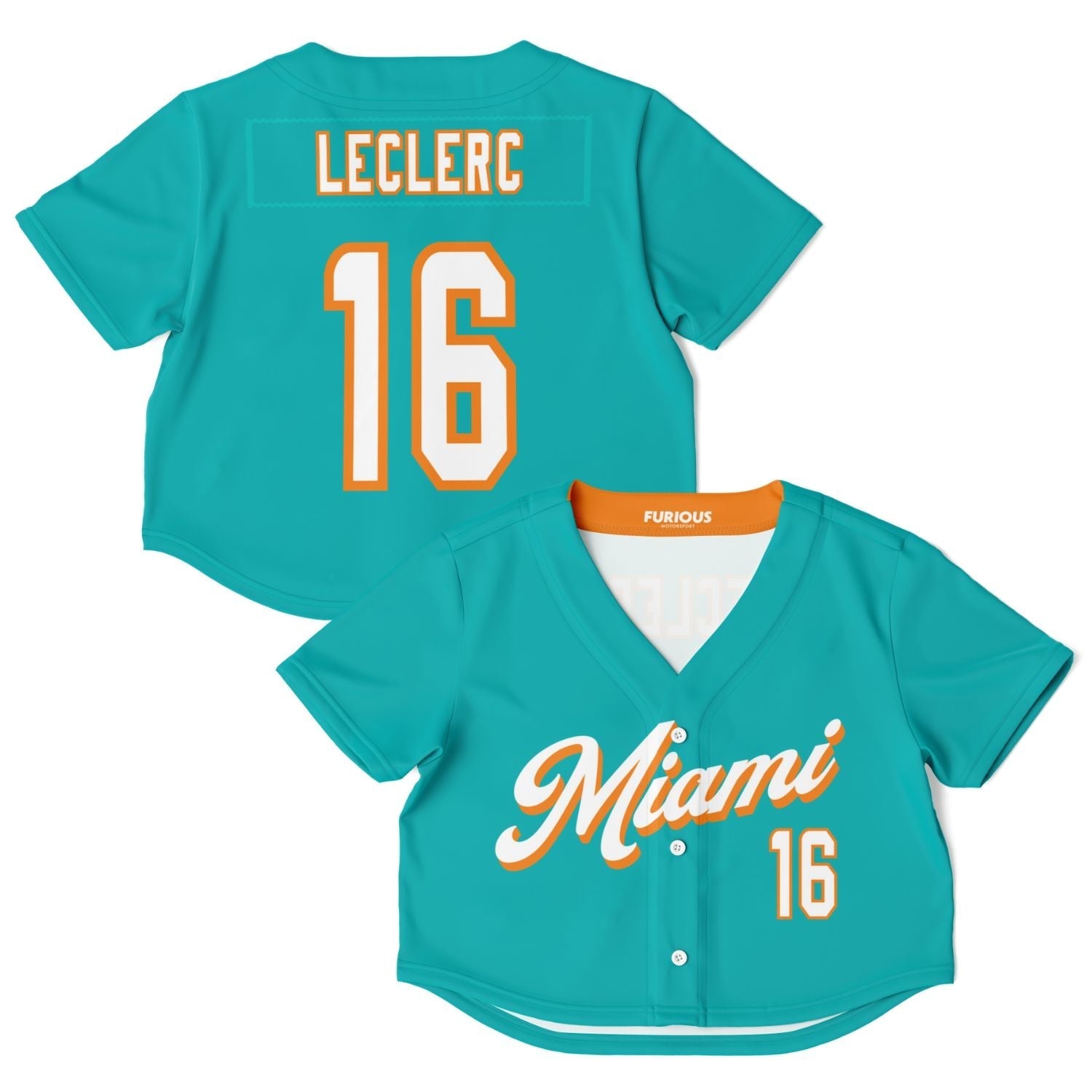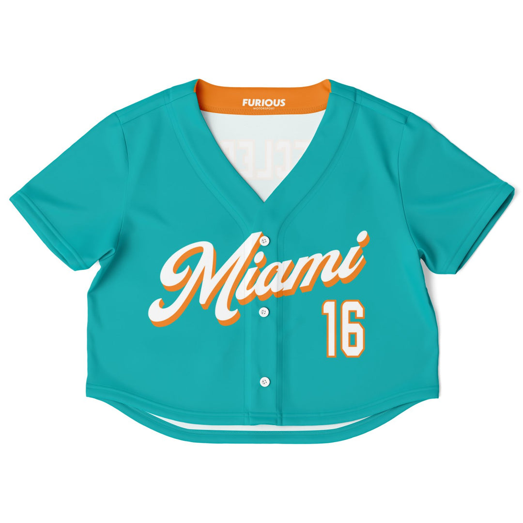 Made for Miami. Introducing the (305) Crop Top. Named after the city’s iconic area code, it features a familiar aqua color base, striking orange accents, “Miami” across the front, and the driver’s last name/number on the back.