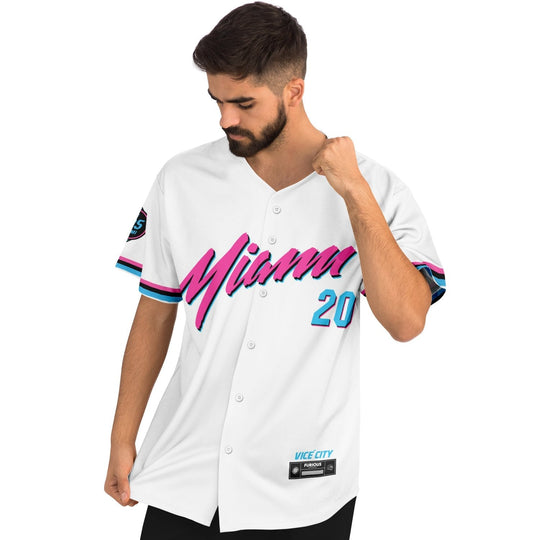 Designed to turn heads wherever you go, the Vice City Home Jersey celebrates the spirit of Miami and the passion of motorsport enthusiasts everywhere.