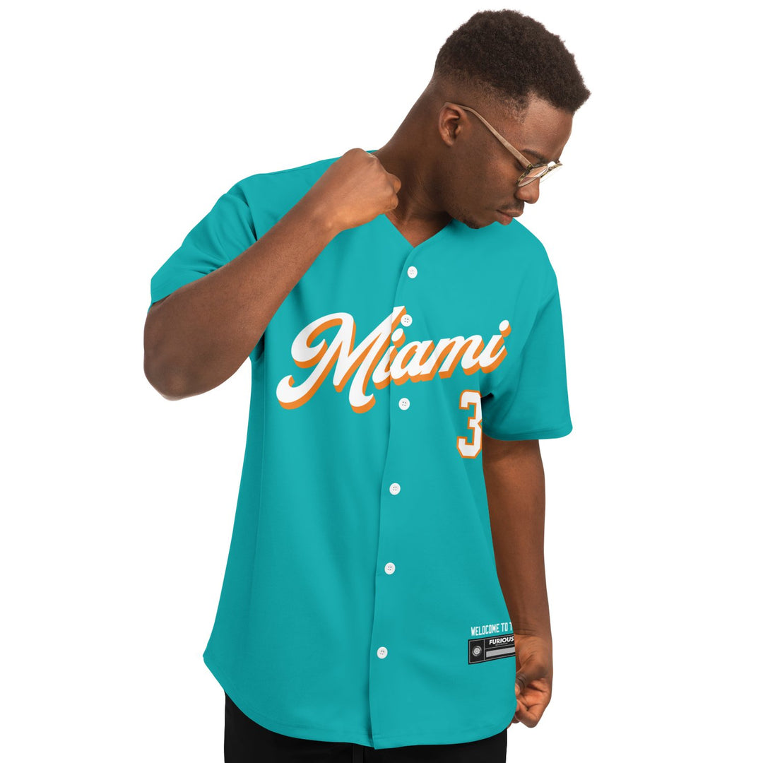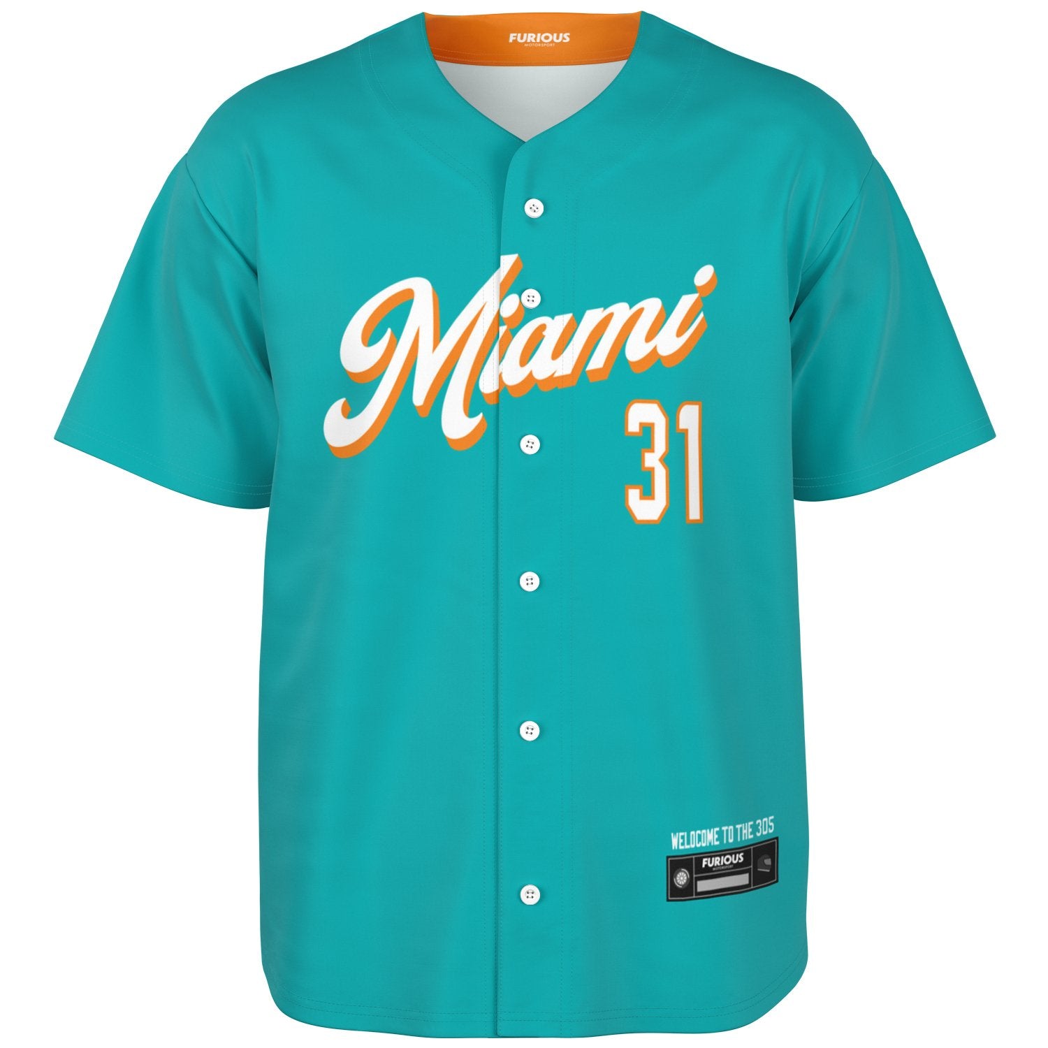 Made for Miami. Introducing the (305) Jersey. Named after the city’s iconic area code, it features a familiar aqua color base, striking orange accents, “Miami” across the front, and the driver’s last name/number on the back.