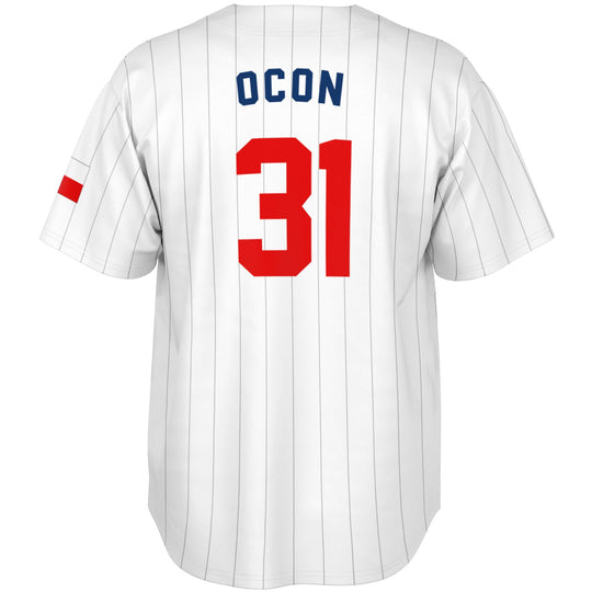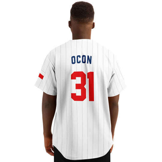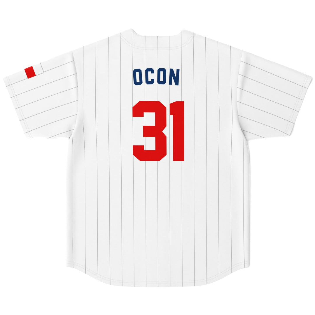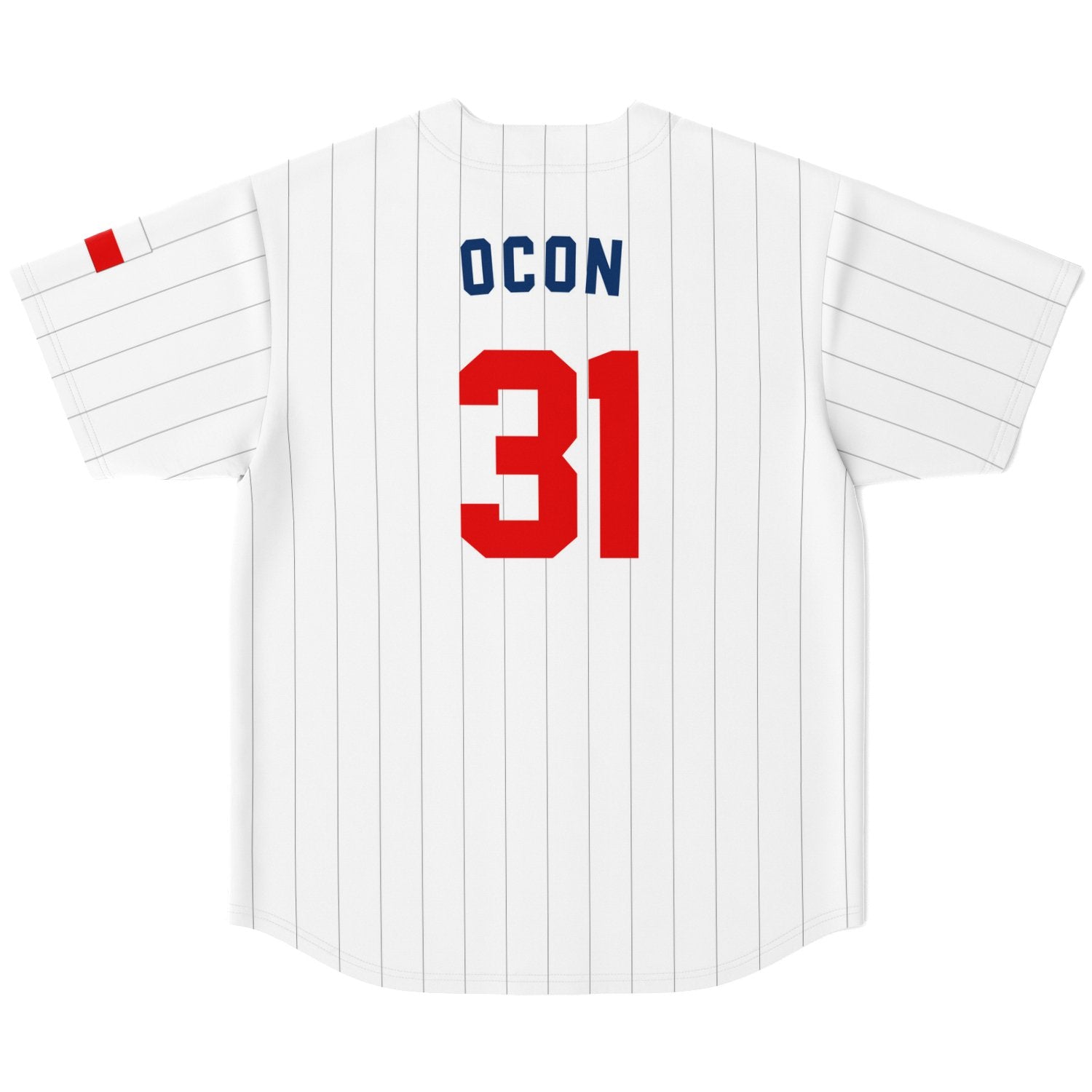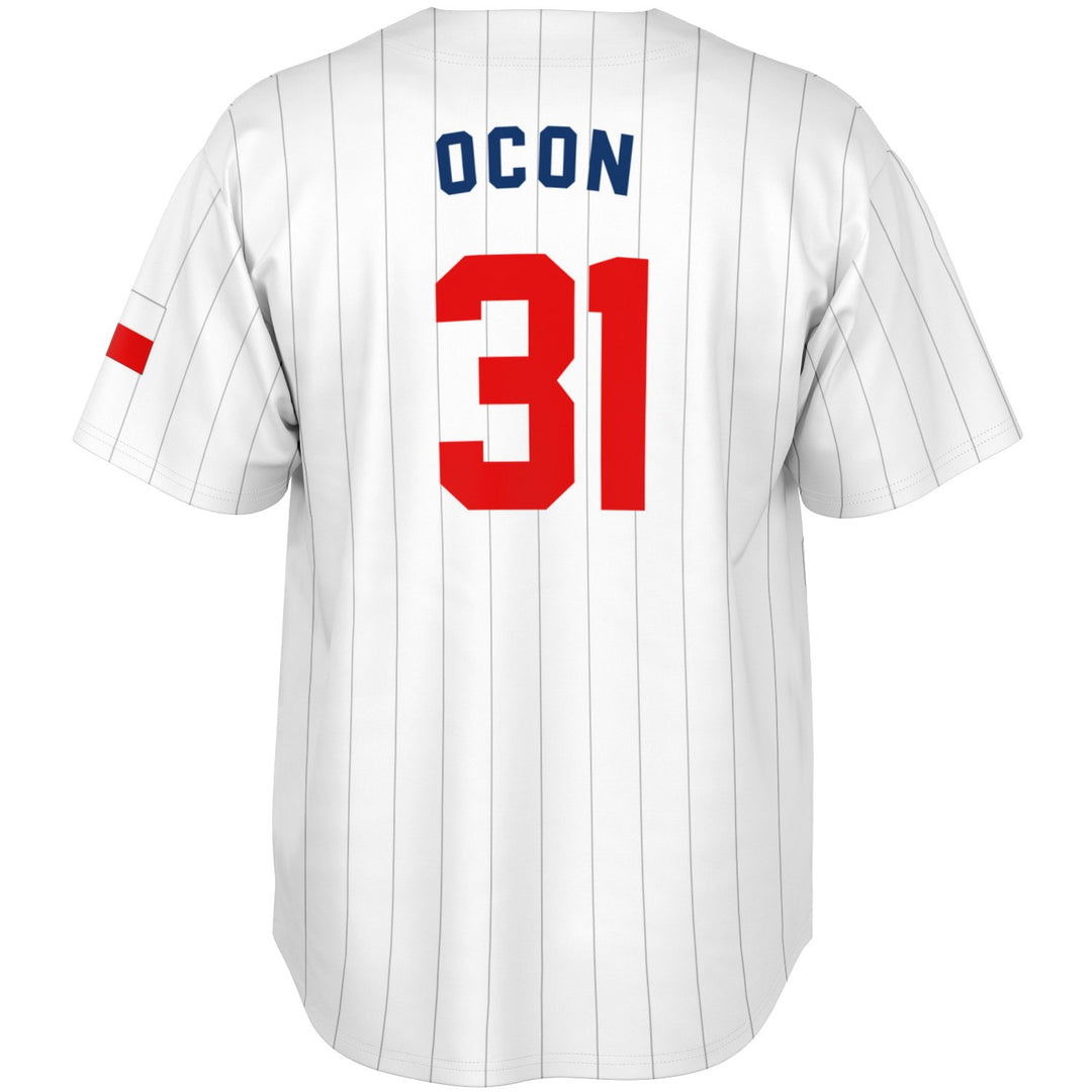 This Lone Star jersey is inspired by the capital of the great state of Texas and its iconic red white and blue flag. Featuring a clean white pinstripe aesthetic, the jersey includes a large "Austin" in blue and a minimalistic driver name and number in red.