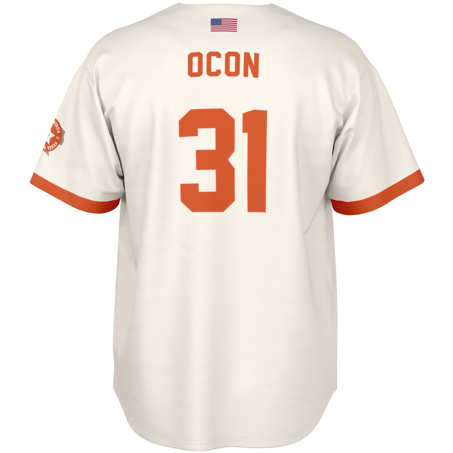 Introducing the Off-White Texas GP Jersey. This design is inspired by the Texas Longhorns of the University of Texas at Austin. The jersey features a large "Texas" in the iconic Burnt Orange colorway with an Off-White neutral base. The perfect jersey for Texas & motorsport. Hook 'em Horns!
