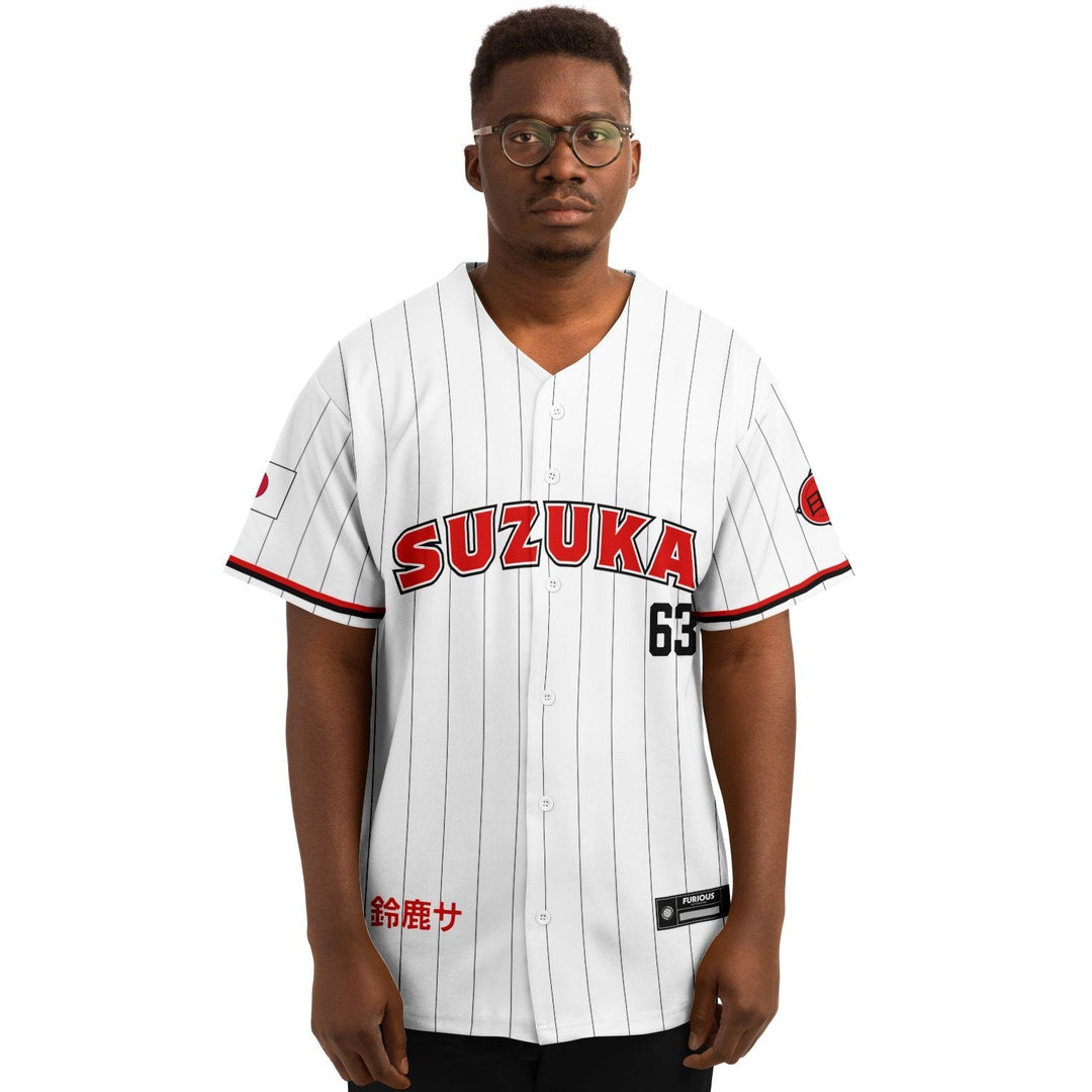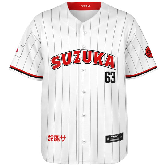 Meet the Suzuka City Jersey. Inspired by the rich history of Japanese baseball. This Suzuka City Jersey includes strong influence from the Japanese National Team. It features a big, bold "Suzuka", referencing the vibrant city of the Mie Prefecture, and includes bright red accents inspired by the “Rising Sun” of the Japanese flag.