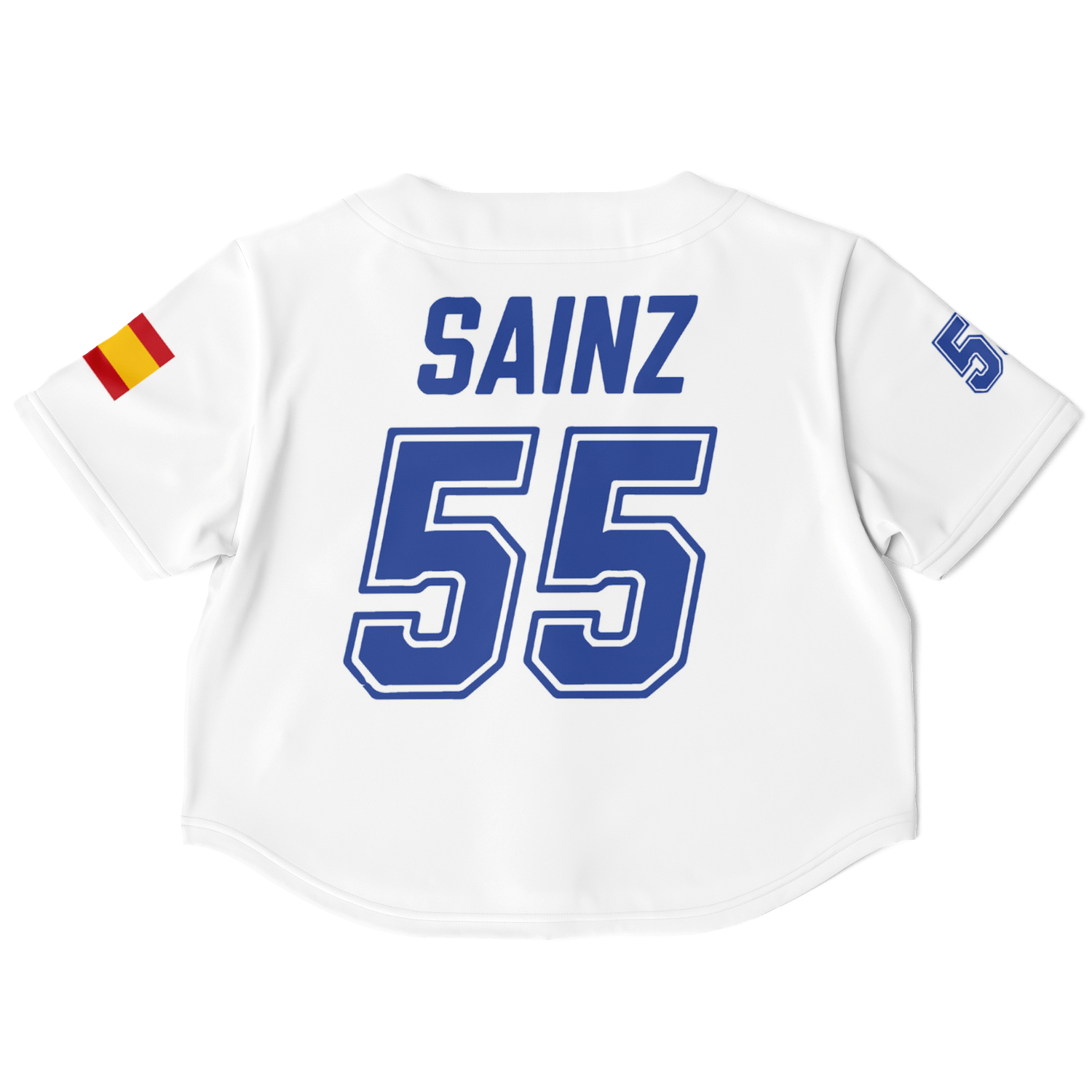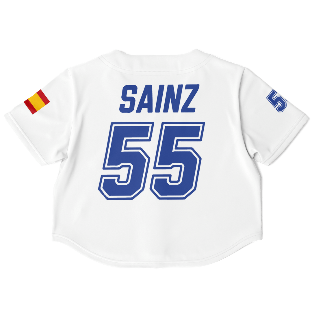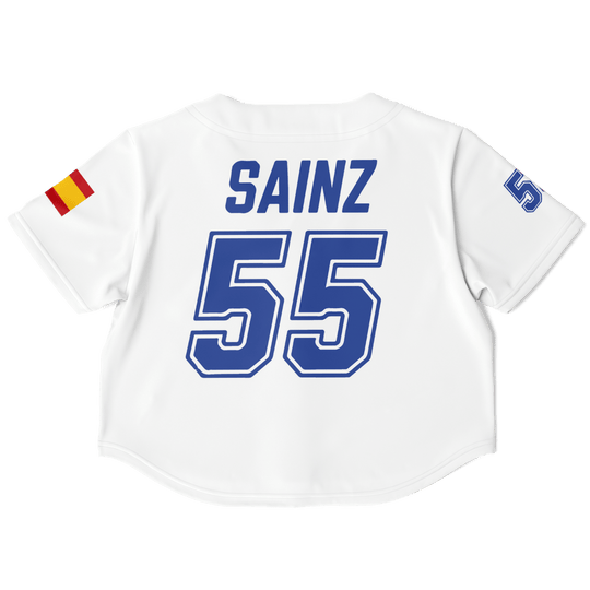 The Sainz Revival Crop Top brings all the race-day energy in a cut made for casual, cool comfort. Rocking the same clean white palette and striking blue accents as its full-length counterpart, this top features SAINZ and the number 55 boldly printed across the chest and back. A subtle nod to his Spanish heritage is found in the flag on the sleeve, while the phrase “Smooth Operator” stitched on the hem seals the vibe.