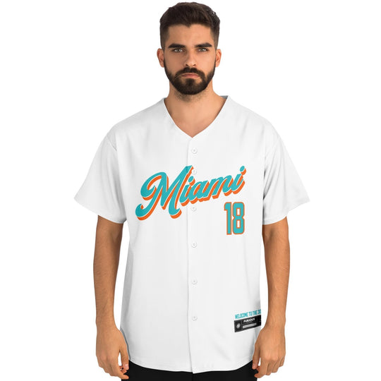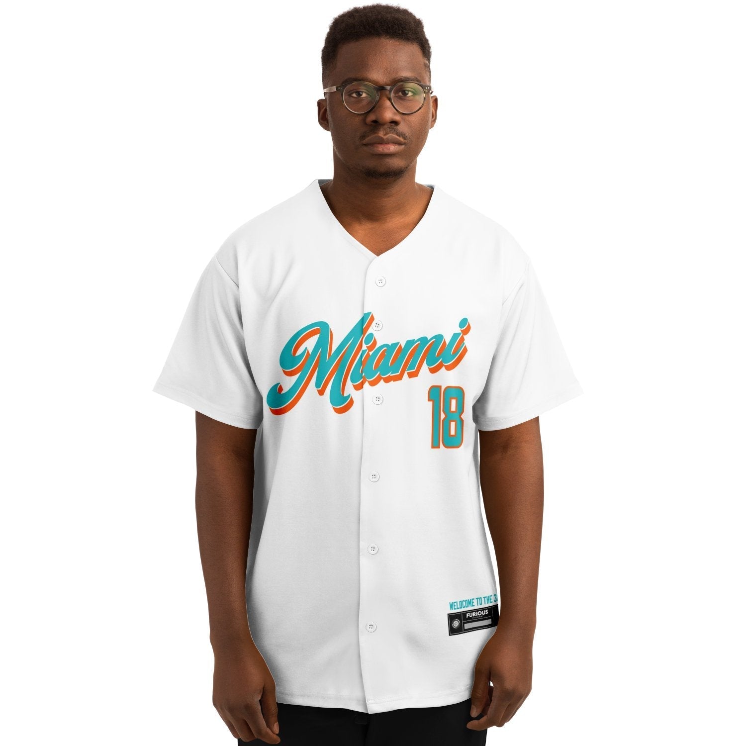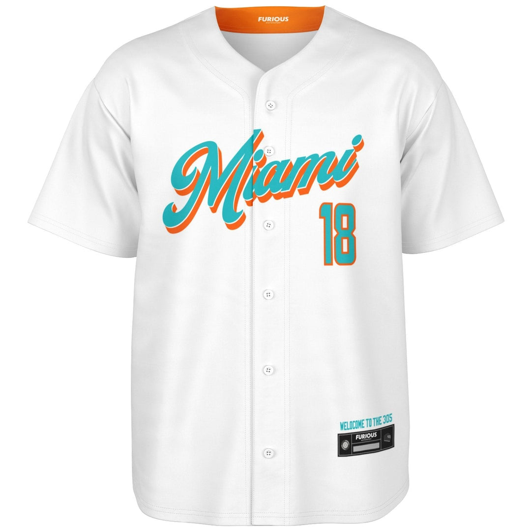Introducing the 305 Home Jersey, inspired by the vibrant spirit of Miami. Named after the city’s iconic area code, this jersey features a crisp white base, accentuated by striking aqua and orange accents. With "Miami" boldly emblazoned across the front and the driver's last name and number at the back, this jersey captures the essence of Miami's dynamic energy.