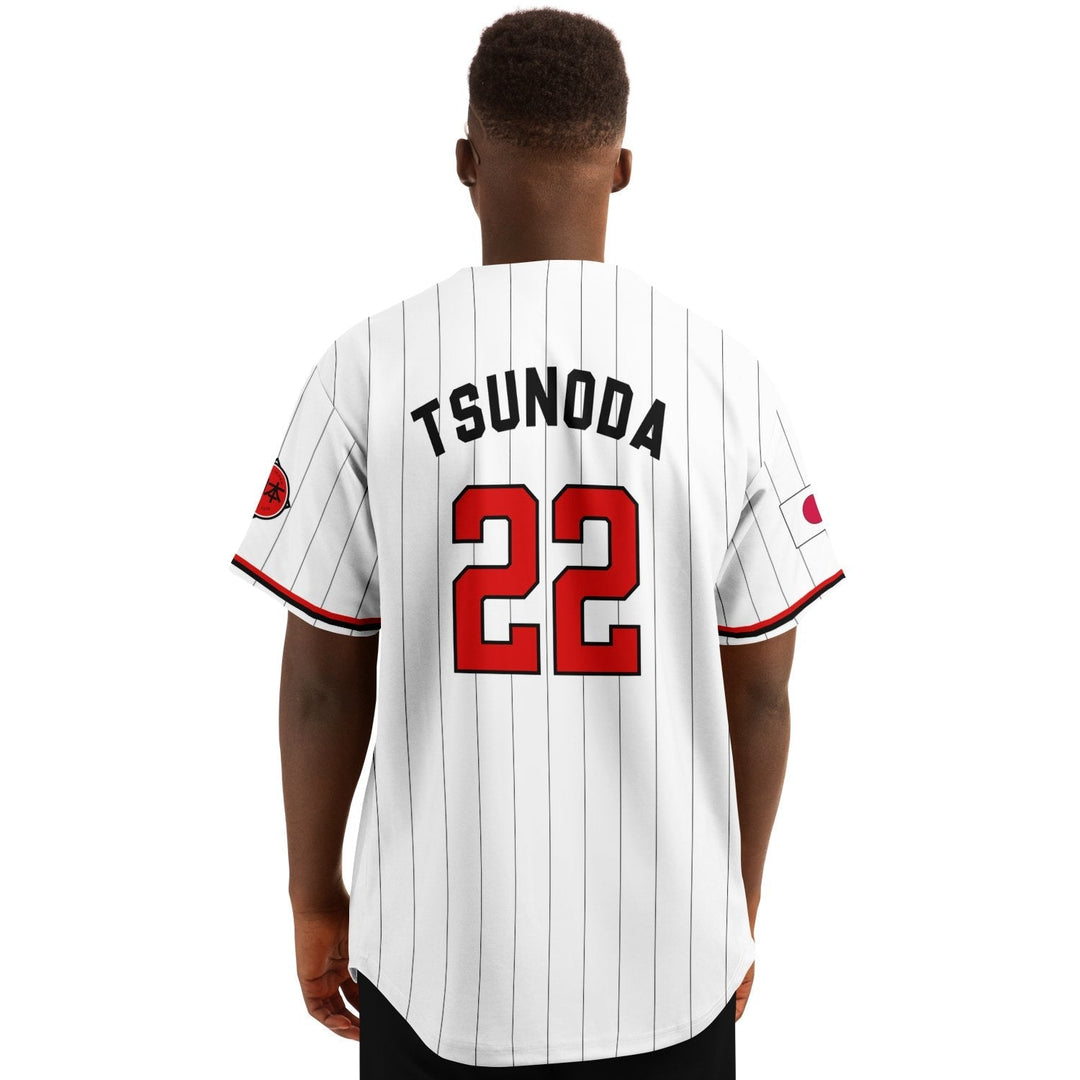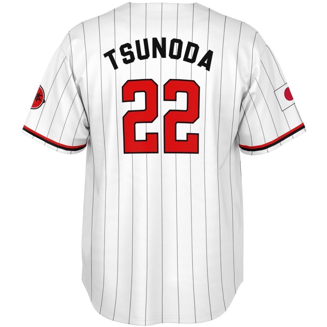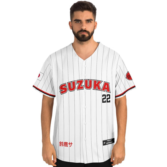 Meet the Suzuka City Jersey. Inspired by the rich history of Japanese baseball. This Suzuka City Jersey includes strong influence from the Japanese National Team. It features a big, bold "Suzuka", referencing the vibrant city of the Mie Prefecture, and includes bright red accents inspired by the “Rising Sun” of the Japanese flag.